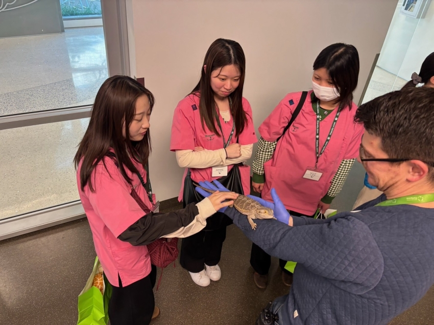 普段なかなか目にすることのない光景で、学生はスタッフの方の話に真剣に耳を傾け、いろいろな動物を見てまわりました